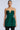 Sculpted strapless mini in deep emerald satin. Defined by a bold notched neckline and tulip skirt pleating for shape and structure. Concealed back zip—holiday parties, handled.