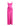 Sleek satin gown in vibrant fuchsia, designed with a draped cowl neckline and gathered hip detail for a sculpted fit. Cut with a high front slit revealing a flash of tonal sequins underneath. A bold look for weddings, galas, or any RSVP that calls for impact.