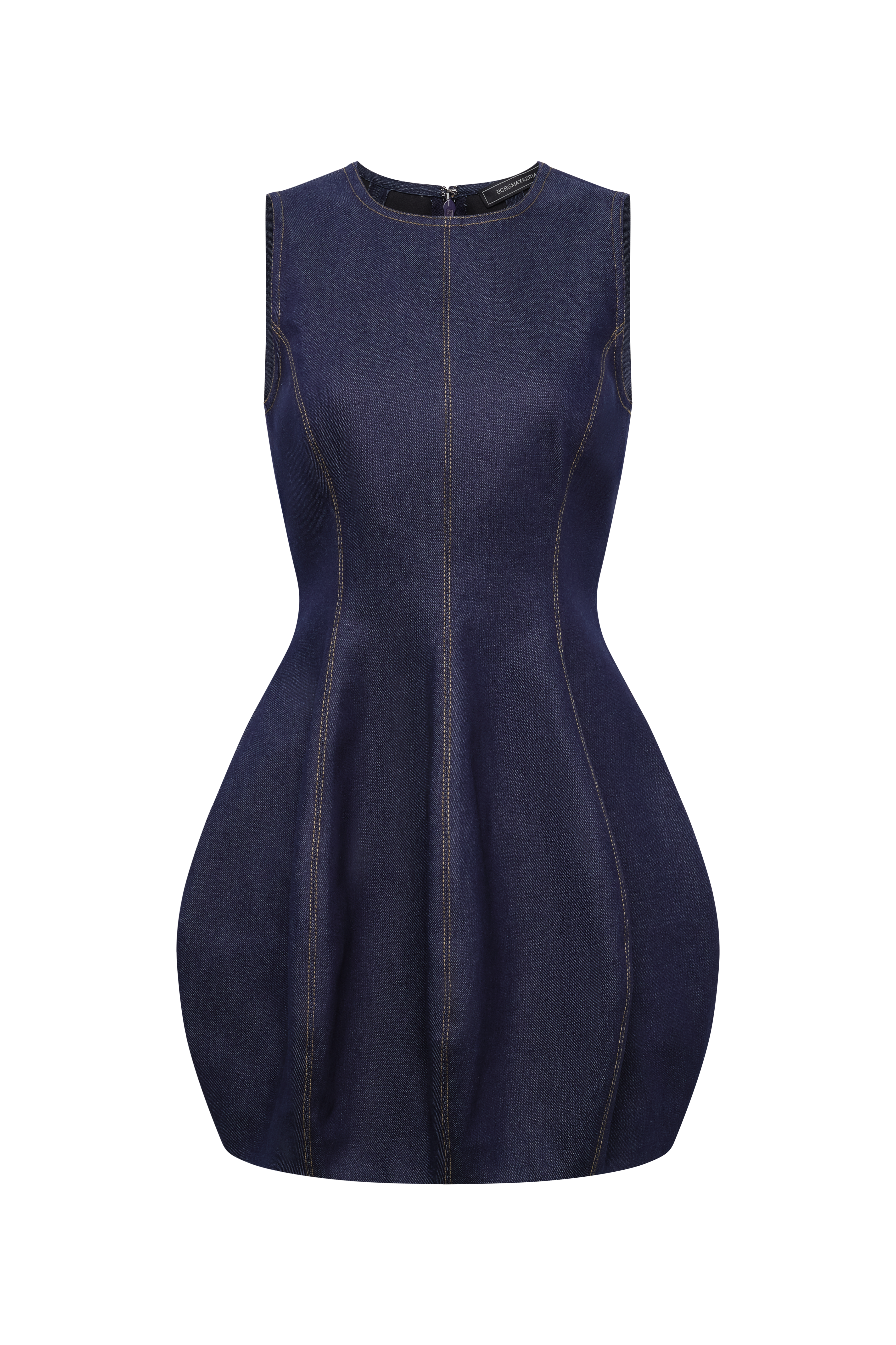 Dark indigo denim mini dress with a sculpted, architectural feel. Precision seaming carves subtle shape through the body, giving structure without stiffness. Clean, directional, and effortless—made for daytime edge or a low-key night out.