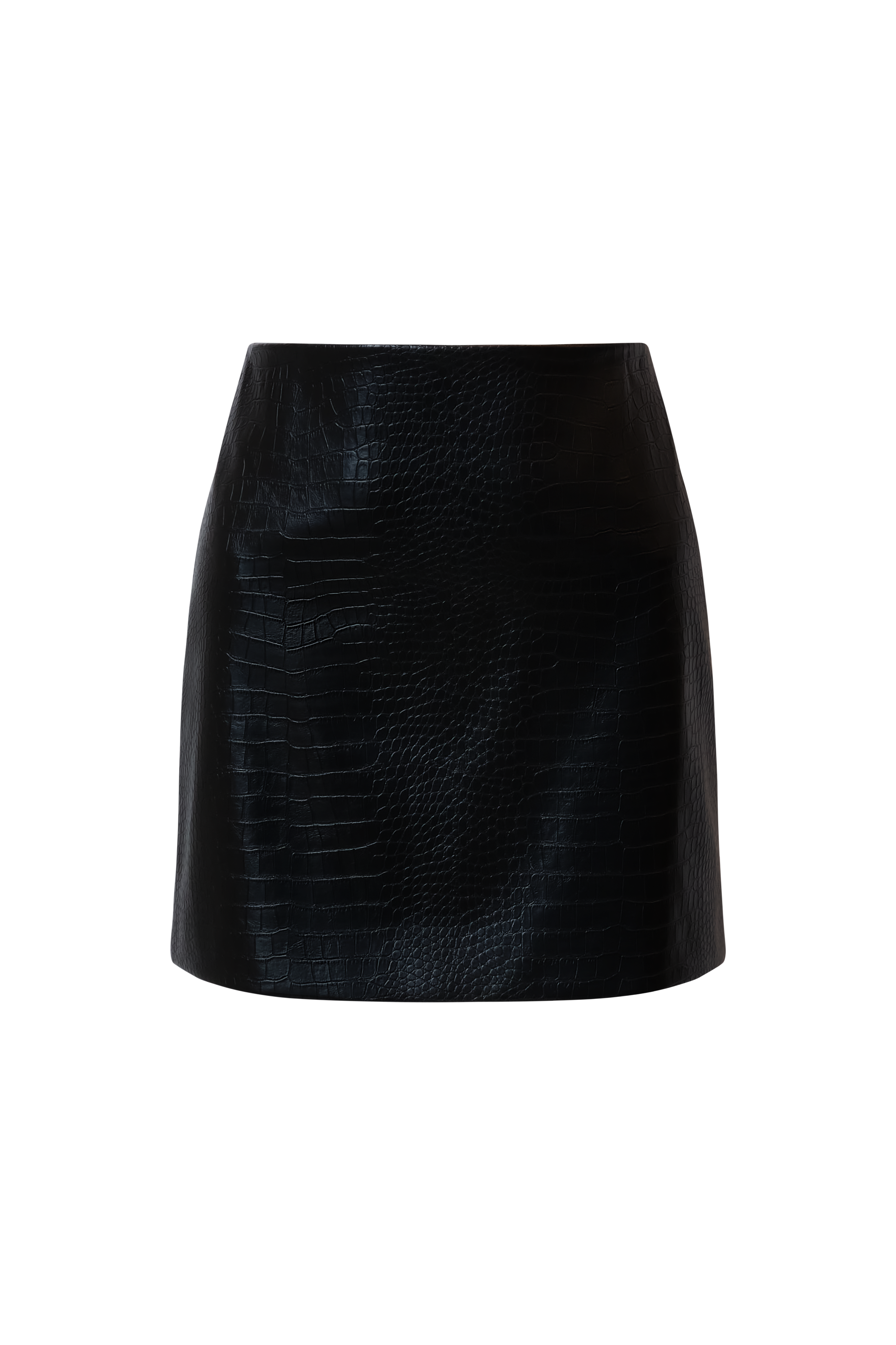 Croc-embossed faux leather mini skirt with a high-shine finish. Designed in a clean A-line cut that skims the hips and flatters the waist. Adds edge to weekend brunches, dinner parties, and spontaneous nights out.